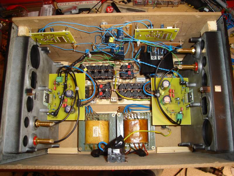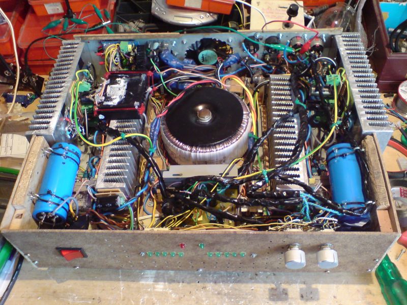 Só depois é que comecei a aventurar-me pela construção de amplificadores caseiros, surgindo a paixão com a descoberta dos "Gainclone" (LM3875 ou LM3886, pode ler mais sobre isso no artigo na Wikipedia), sendo que decidi construir um amplificador ultra potente e pesado, pois estava na altura a tocar numa banda e precisávamos de um amplificador PA e decidi combinar o melhor do Hi-Fi com o mundo do audio profissional: saiu de lá uma besta de quase 15 kg com um transformador toroidal muito grande e design dual mono à base de LM3886, dissipadores enormes, com uma fonte de alimentação regulada, capaz de mais de 100 W reais em 4 ohms. Acabou por ser usado apenas uma vez em público pois a banda entretanto se desfez e comecei a estudar na universidade, deixando de ter tempo.